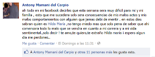 Gisela Mmsalom dice "ANTHONY sobrino el ser diferente como los llaman algunas personas no es malo .... me imagino q debe ser dificil el aceptar ante todos como eres pero si tu estas bien xvre ,solo trata q tu mamita no sufra pero si t ve feliz poco a poco entenderá, yo no puedo juzgar a nadie xq voy a tener un hijo varon dentro de 3 mese y nadie sabe q pasará cuando el crezca, solo le pido a DIOS q nazca sanito , un besito sobrino mio y los errores q cometiste antes son experiencias q la vida nos da y de ella aprendemos... solo pide a nuestro padre celestial q ilumine tu vida para q aceptes la palabra de jesuscristo lo demas viene solo ...... QUE DIOS TE BENDIGA A TI Y TU FAMILIA con cariño tu tia gise"