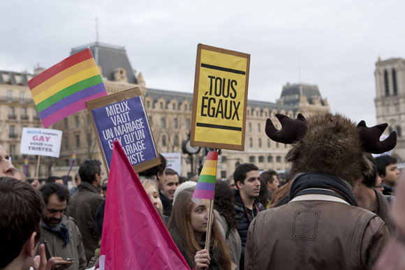 El debate sobre la legalización del matrimonio entre personas del mismo sexo está muy vivo en Francia. El pasado 13 de enero una marcha organizada por la derecha, en la que participaron según la Policía unas 340.000 personas, manifestó su rechazo al proyecto de los socialistas.