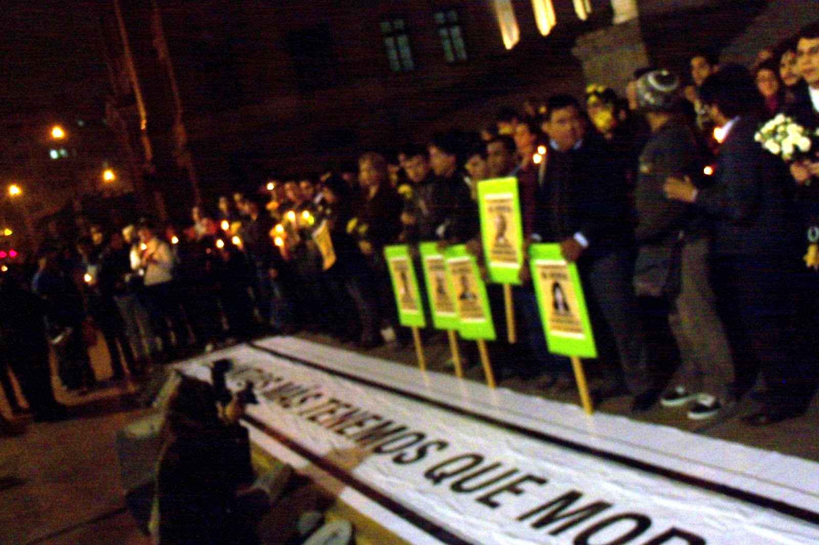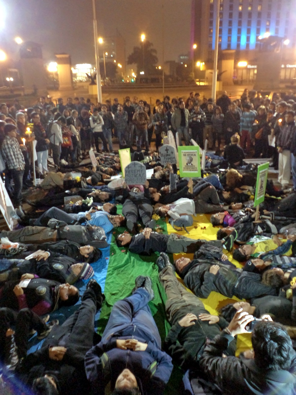 La vigilia se inició hacia las 7:00 PM con una instalación de ataudes y lápidas y las fotos de los estilistas Martin Flores y Alex Quiroga, victimas de violentos asesinatos y del adolescente Luis Enrique, quien se suicidó debido al acoso homofóbico de sus familiares.