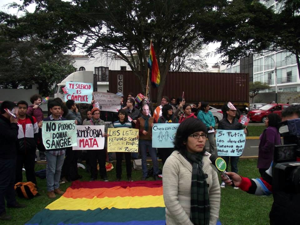 "Cabe recordar que en Perú –el país más homofóbico de Sudamérica- las leyes tampoco reconocen los derechos fundamentales de lesbianas, gays, trans y bisexuales. En los últimos meses, el Congreso de la República votó en mayoría por no incluir a la población LGTB en las leyes contra crímenes de odio, a pesar de que al año más de cincuenta LGTB son víctimas de crímenes de odio. Por esto, la manifestación de hoy será en solidaridad con la comunidad LGTB, para llamar la atención sobre los espeluznantes niveles de homofobia que actualmente se sufre en Rusia".