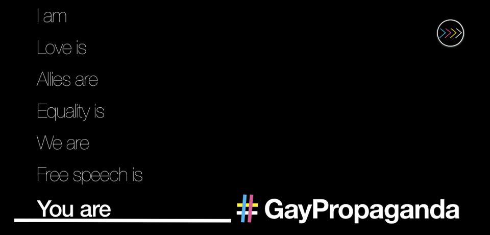 Se acercan los juegos olímpicos de invierno en Sochi, Rusia, y cada vez hay màs y màs iniciativas que buscan que no olvidemos la triste situación que viven las y los LGTB en ese paìs. Les presentamos ahora "(We Are) #GayPropaganda" / (Somos) #PropagandaGay, una campaña muy inteligente impulsada por dos expertos en social mediay varios activistas LGTB , que intenta darle la vuelta al término de "propaganda gay" acuñado por el gobierno ruso.
