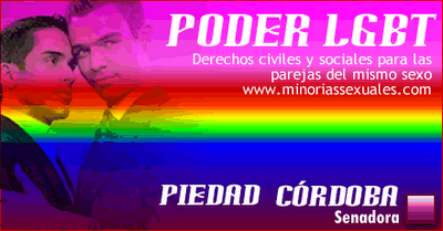 La Senadora del Partido Liberal Piedad Córdoba (foto izq.), radicó ante el Senado de la República de Colombia una iniciativa legal que busca el reconocimiento por parte del Estado y de la Ley, de la unión de parejas del mismo sexo, el derecho a registrar la unión ante una notaría y por tanto, el reconocimiento de los derechos patrimoniales, tal como son reconocidos actualmente los de las uniones de hecho de las parejas heterosexuales.