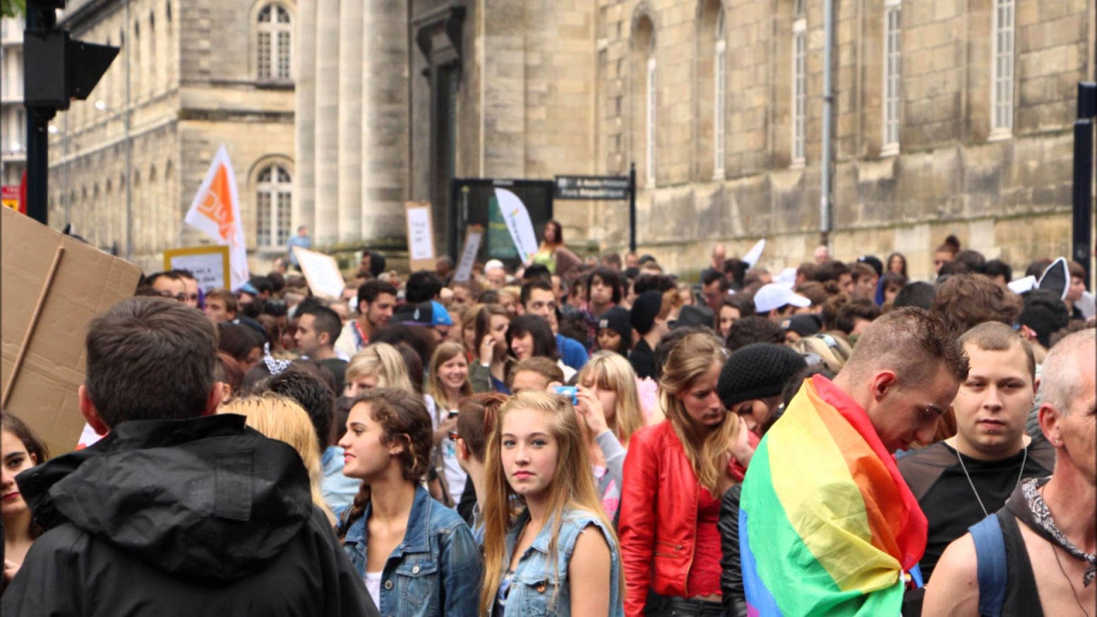 El Sábado, ni la lluvia ni el frío disminuyeron los ánimos de los miles de participantes en la Marcha del Orgullo LBT en la ciudad francesa de Burdeos